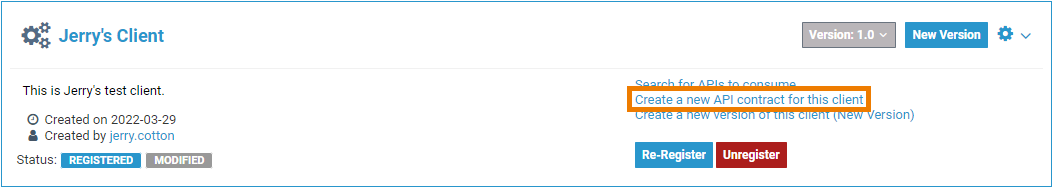Another option to create a new contract from the client details page is by using the link Create a new API contract for this client: