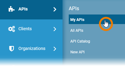 All APIs used in one of your organizations will be listed on the My APIs page. Click the menu item APIs in the sidebar menu and choose My APIs to open this page.