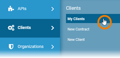 All clients used in one of your organizations will be listed on the My Clients page. Click the menu item Clients in the sidebar menu and choose My Clients to open this page.