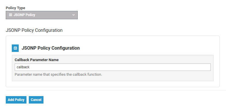 If the API client does not send the JSONP callback function name in the URL (via the configured query parameter name), the policy will do nothing. This allows managed endpoints to support both standard REST and JSONP at the same time.