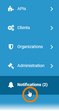 The Notifications menu is displayed directly in the sidebar of API Management. Click the menu option to open the notifications.