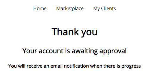 | The user is forwarded to the API Developer Portal, where a message informs him that his account is waiting for approval. API Management administrators will receive an email notification that a new user request has been made. An administrator must now approve the request. After approval, the user will also be notified by email. He can then login and continue with the sign up process. |