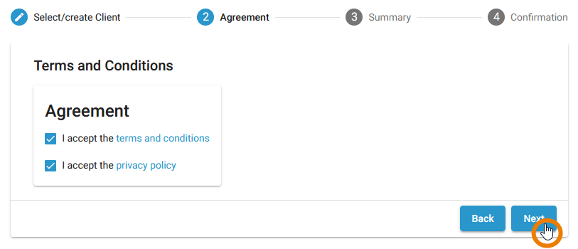 | Terms and Conditions It is possible to enable the additional step Terms and Conditions where you can link to your terms and conditions and enforce users to accept them before they can register for your APIs. If you want to enable this option on your system, please contact our Scheer PAS support team. |