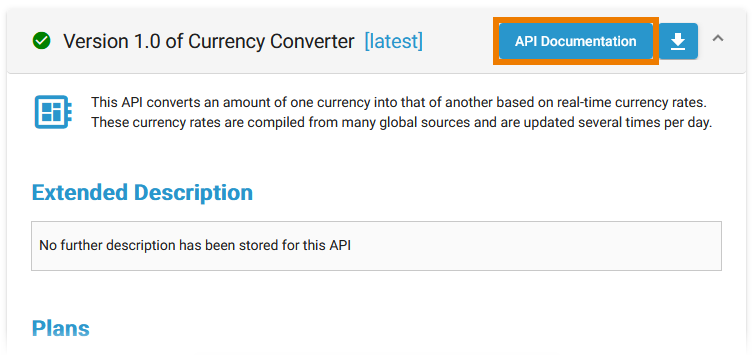 | You can also use the API Developer Portal to access the Swagger UI and make your test calls (refer to chapter Developer Portal for further information). Click on the button API Documentation which you can find on an API tile...  |