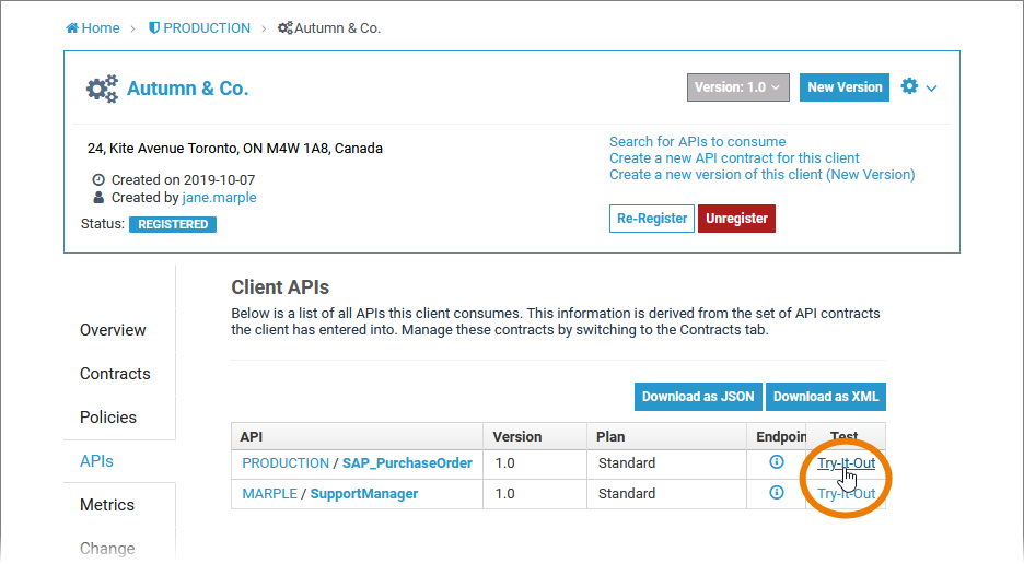 Click Try-It-Out on the API you want to test.
