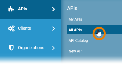 If you want to test an API marked as Public, you need to open the details page of the API. Open the sidebar menu and select All APIs from menu item APIs: