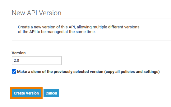 Make a clone  | Enable this checkbox if you want copy the policies and settings of the previous version to your new version. Typically cloning is more convenient when making incremental changes.  |