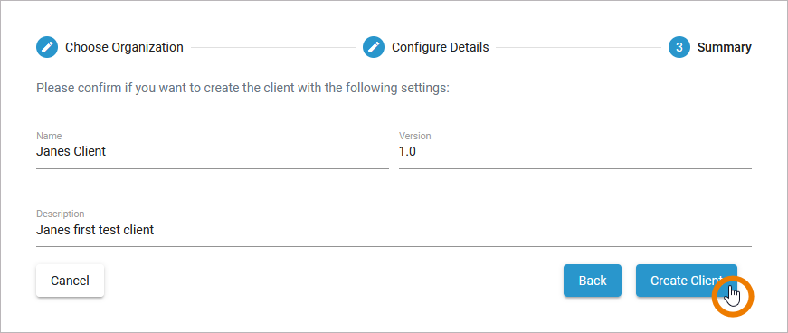 Click Create Client to finish.