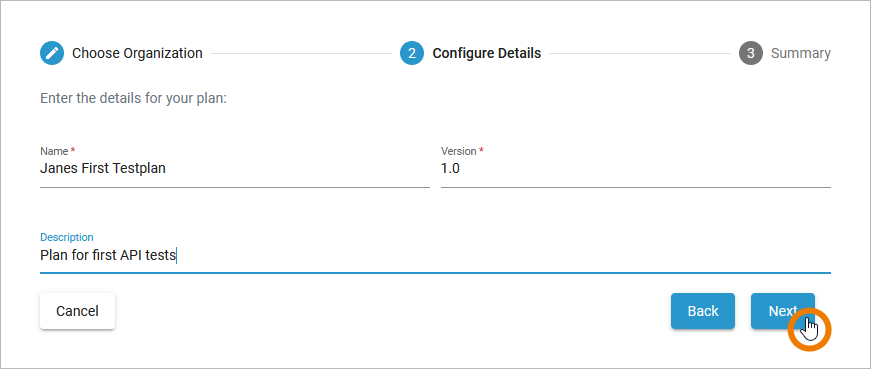 You can then enter a description. The description is optional and can also be entered or changed later on the details page. Click Next to continue: