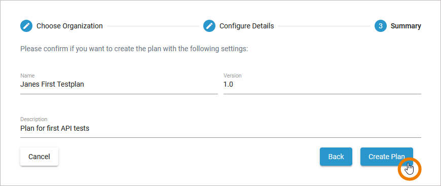 Since plans can only be managed within an organization, you can also create a new plan from the empty Plans tab of an organization details page. Simply use the link Click here to create a new plan: