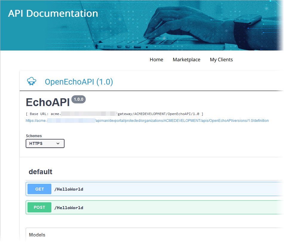 If your API is public, you are redirected to the test page (see Testing below) in the API Developer Portal: