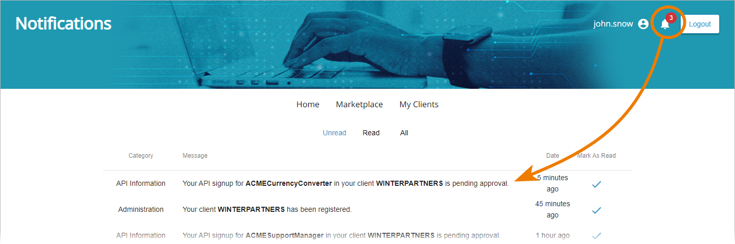 As soon as an administrator approved your request, you will get a notification. Now you can start using the API.
