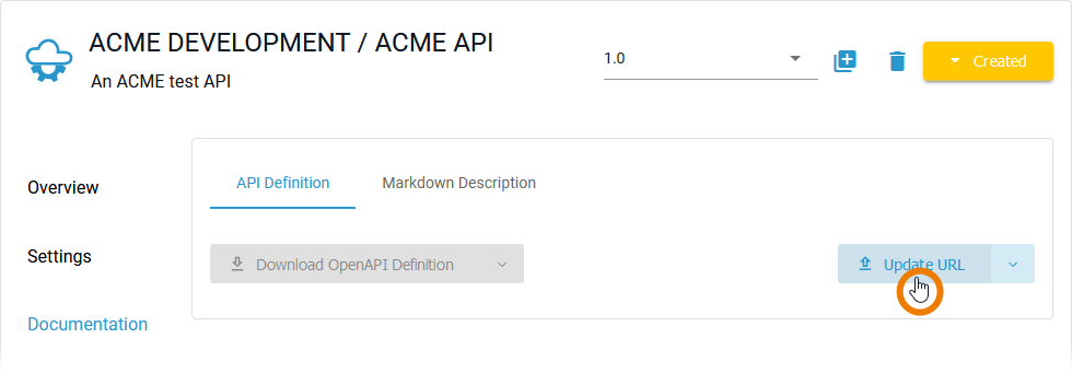 If you want to load the API definition from a URL source, click Update URL: