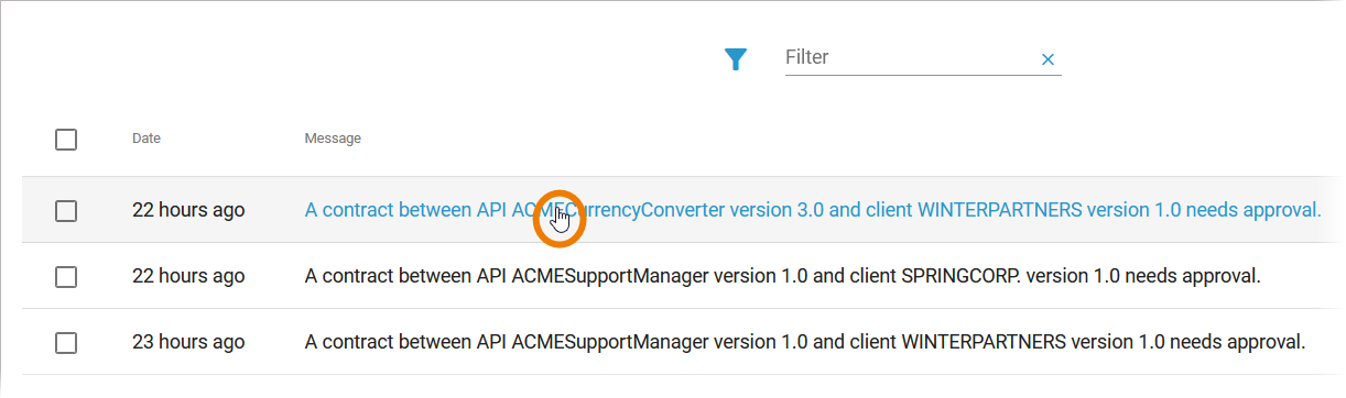 All notifications are displayed in a list. You can use the filter to search for specific messages: