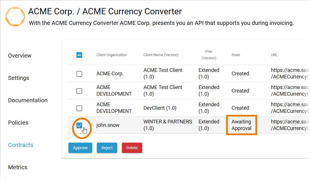 Tab My Notifications is displayed directly in the main navigation bar of API Management. The number of unread notifications is also shown. Click the tab to open the notifications: