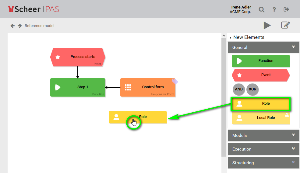 Roles can be created during modelling in the editor of Scheer PAS BPaaS as well as in the Scheer PAS Administration.