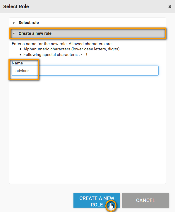 In BPaaS, a wizard supports the design user when creating a new role. The user can choose if he wants to select an already created role or if he wants to create a new role: