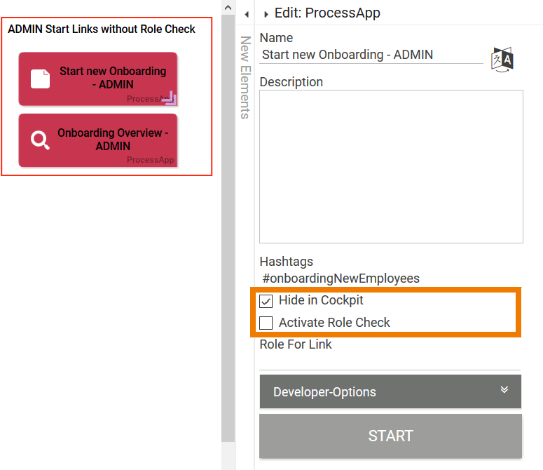 The selection of subsequent steps is also relevant to the design user. If the PAS designer created an administrator start link without role check, then he may execute the process for all roles:
