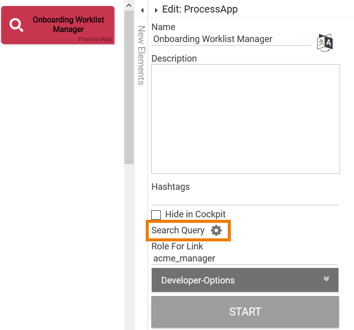 Example: The process step Creating initial trainin plan is set in the search query's filter of start link Onboarding Worklist Manager