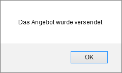 Der Angebotsprozess endet mit der Anzeige des Alerts Angebot: