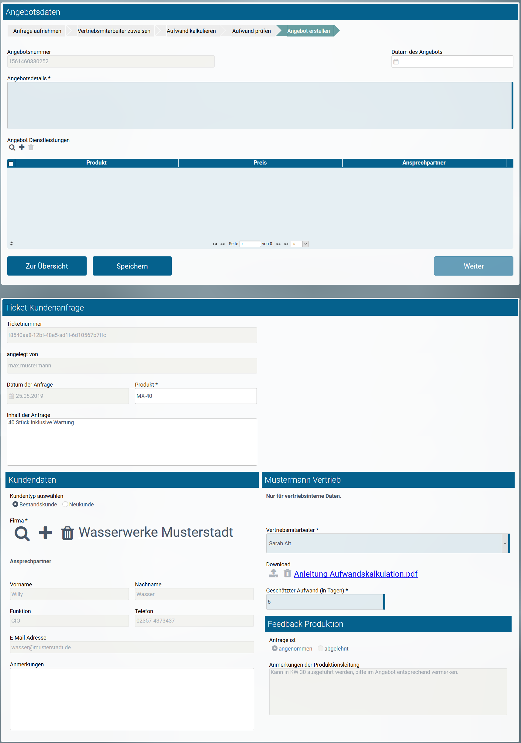 Hat er die Anfrage angenommen, läuft der Prozess weiter in die Angebotserstellung.
