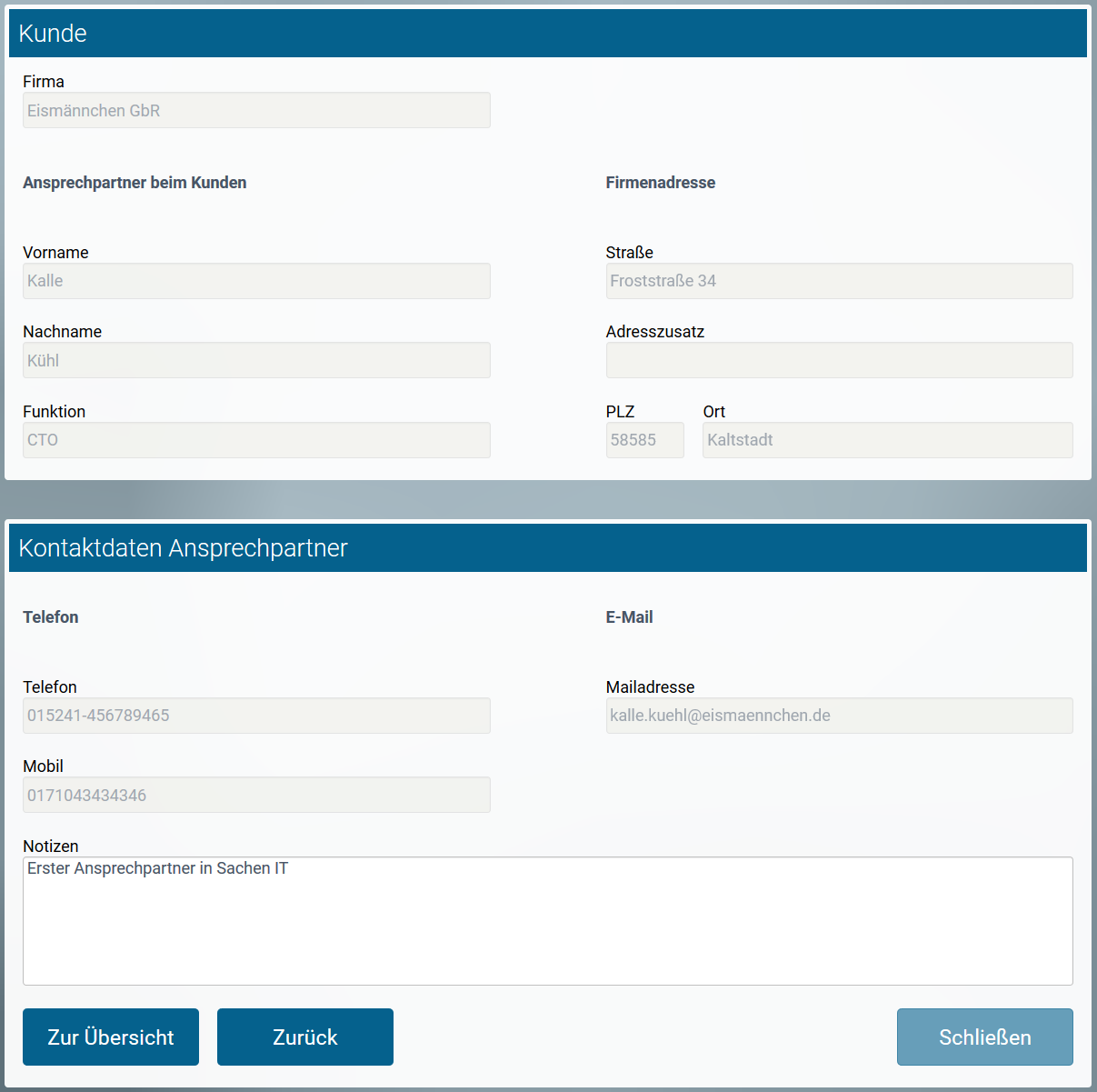 Mit der Eingabe von Telefonnummern und E-Mail-Adresse werden die Kundendaten im Formular Kontaktdaten komplettiert: