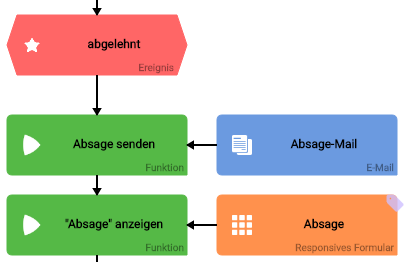 Die Ablehnung durch den Leiter der Produktion führt zum Versand der E-Mail Absage: