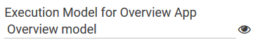 ![]() | Execution Model for Overview App Enter the EPC model here, that shall be executed via the Process App Overview. When creating a new App Project the EPC model Overview model is created by default. If you already configured an EPC model with overview form, that you wish to execute, please insert its name here. This field uses auto-complete. Use the eye icon to open the underlying EPC. |