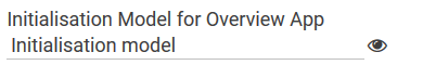 ![]() | Initialisation Model for Overview App The Initialization Model defines process steps to be executed prior to starting the app. This could for example be the retrieval of possible values, which need to be available upon starting the app. The model entered here will be executed prior to starting the Process App Overview. When creating a new App Project the EPC model Initialization Model is created automatically. If you already configured a separate Initalization Model you may save its name here. This field uses auto-complete. Use the eye icon to open the underlying EPC. You may designate different Initalization Models to each New and to Overview. |