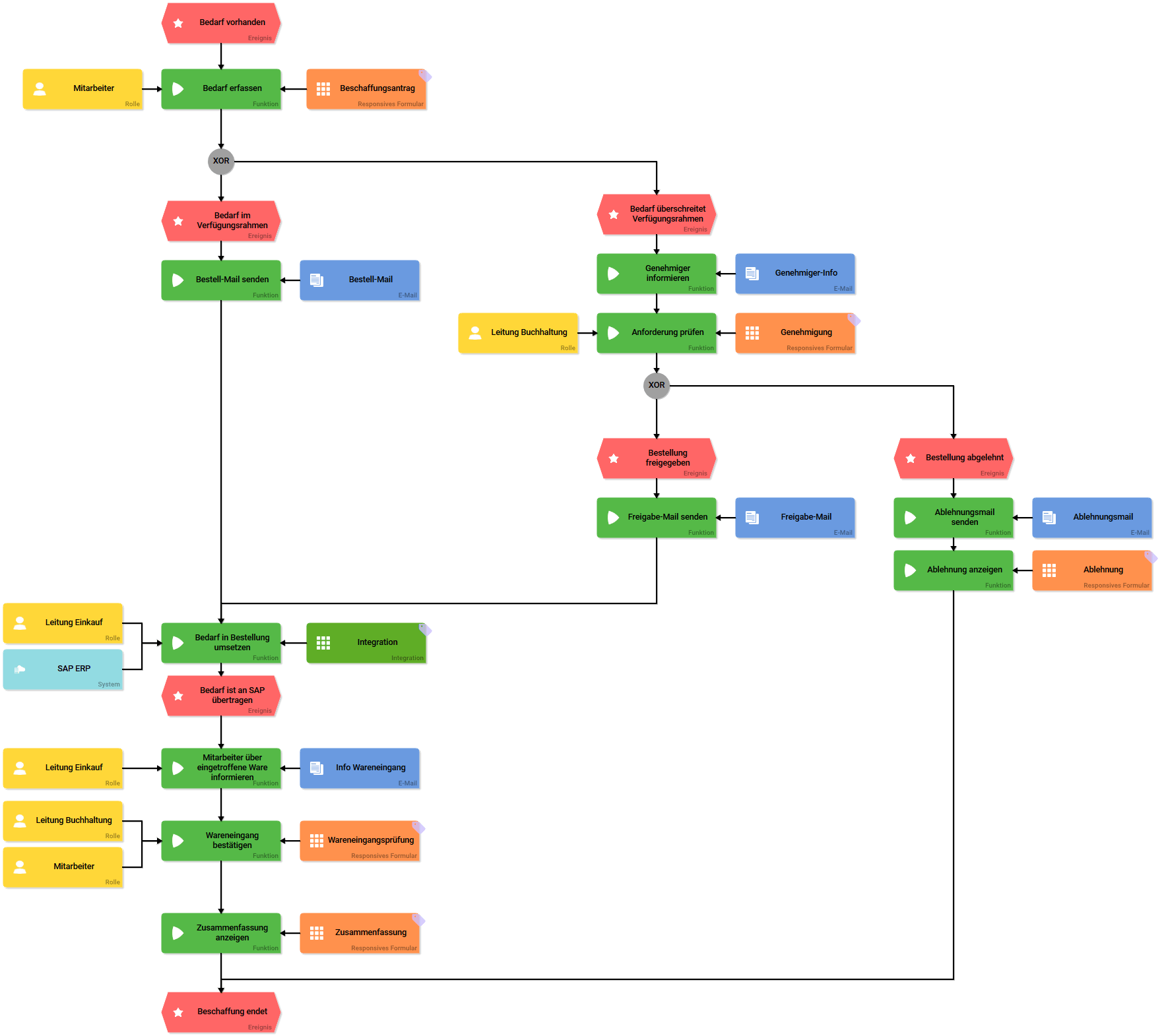 Genehmigt die Buchhaltung den Antrag, wird der Besteller darüber informiert und die Bestellung wird im Anschluss an das SAP-System übergeben.
