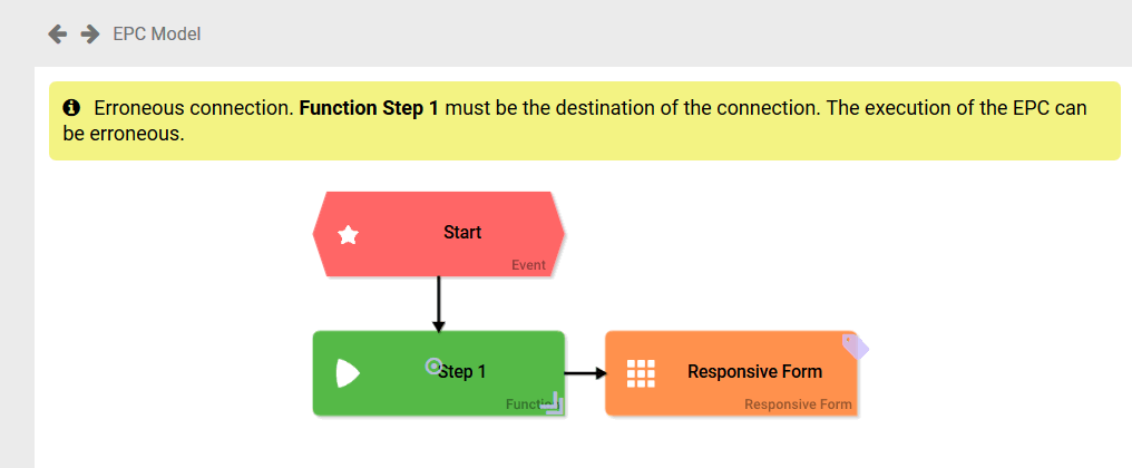When modeling EPCs, notifications are displayed directly in the editor header: