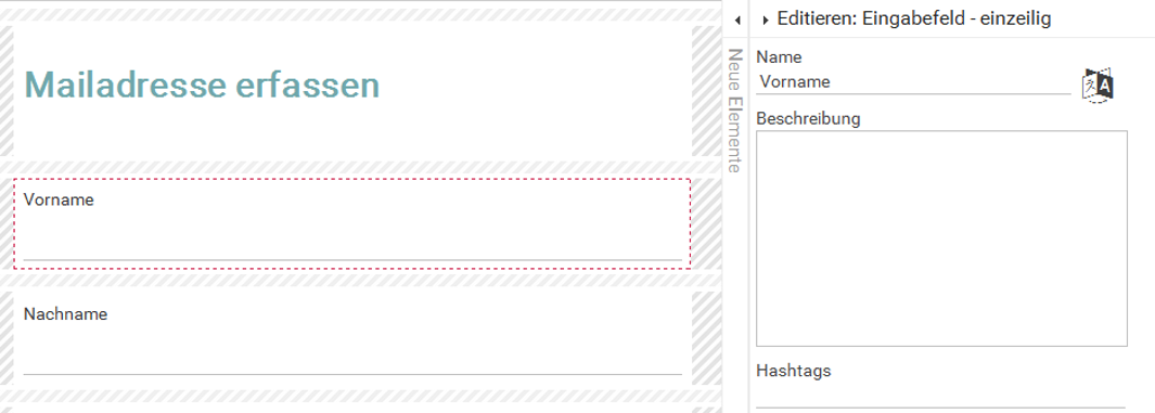 Im Formular-Editor wurden die Eingabefelder Vorname, Nachname und E-Mail-Adresse angelegt: