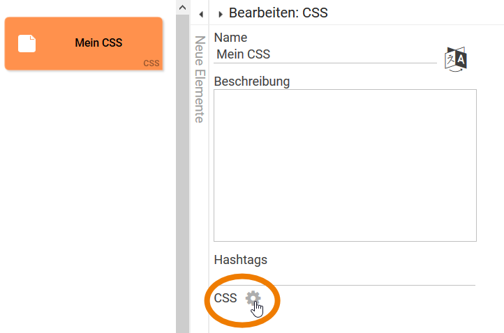 Ihre Anweisungen geben Sie direkt im Editor des CSS-Modells ein. Klicken Sie auf das Zahnrad CSS, um den Editor zu öffnen: