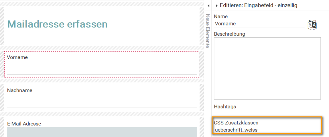 Anschließend wird die Zusatzklasse im Formular-Editor sowohl dem Eingabefeld Vorname...