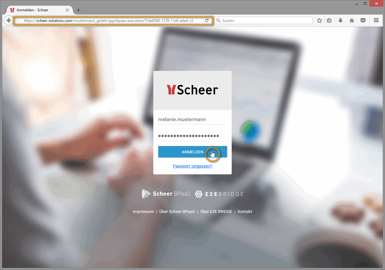 Die Homepage des BPaaS-Systems der Mustermann GmbH wird geöffnet, die Leitung Buchhaltung kann sich einloggen: