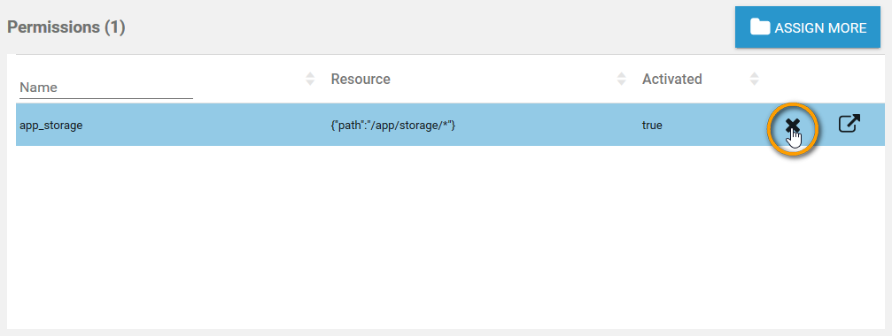 You can delete already assigned permissions by using icon X. Access to the corresponding URL will then be removed from the profile.