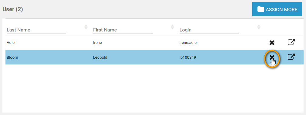 You can delete already assigned users by using icon X. The user will then be removed from the profile.
