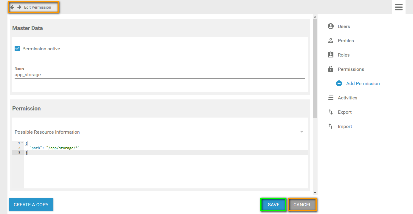 The corresponding permission data sheet will open and you can edit the permissions data:
