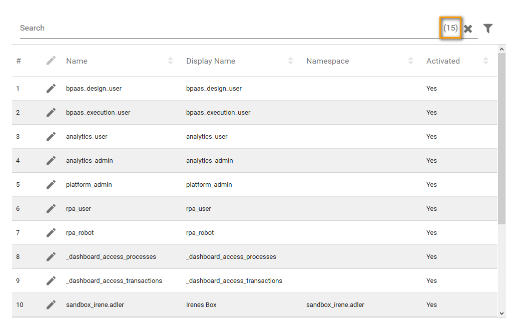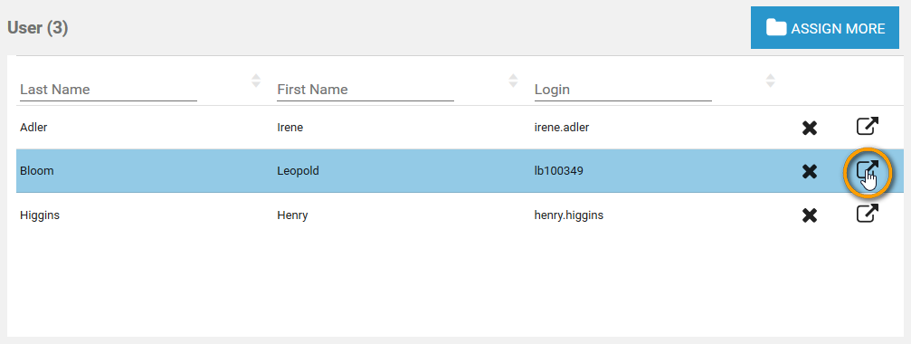 Administrators can also use the User section to switch directly to the corresponding data sheet to edit a user. To do so, click the corresponding icon: