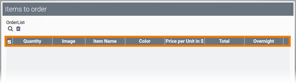 Now, the app link OrderList contains all the information the purchasing department needs to place an order: