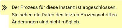 Wenn eine Instanz den letzten Prozessschritt erreicht hat, wird der Anwender darüber informiert. Im letzten Formular wird nach dem Speichern die folgende Hinweismeldung eingeblendet: