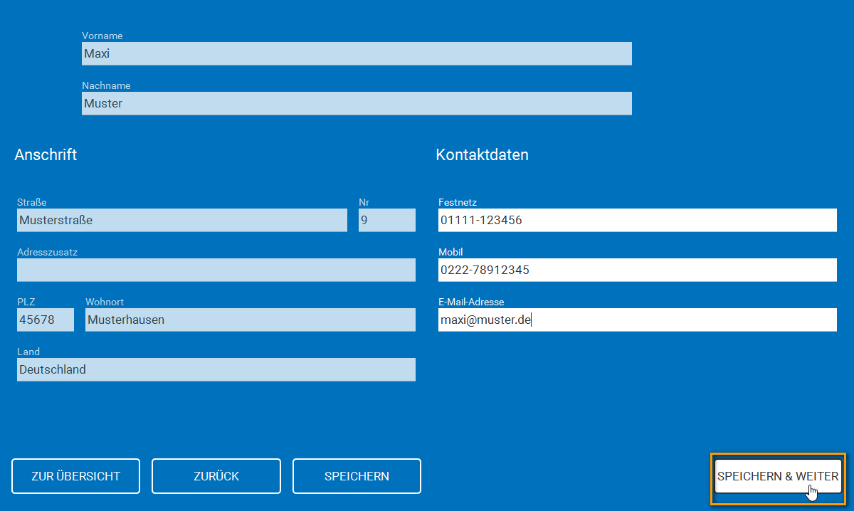 Im letzten Formular wurde allerdings auch ein Button Zur Übersicht eingefügt. Über diese Schaltfläche kann der Anwender das Formular verlassen und in die zugehörige Übersicht wechseln: