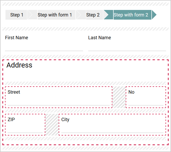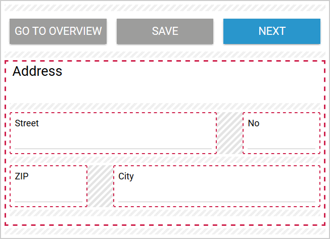 You can use the responsive element to make forms clearer. You can find the element in the category Structuring. Form elements can be grouped into blocks using the responsive element. This allows users to reuse combined groups of form elements in other forms. Using a responsive element also makes it easier to move related elements to other positions in the form.