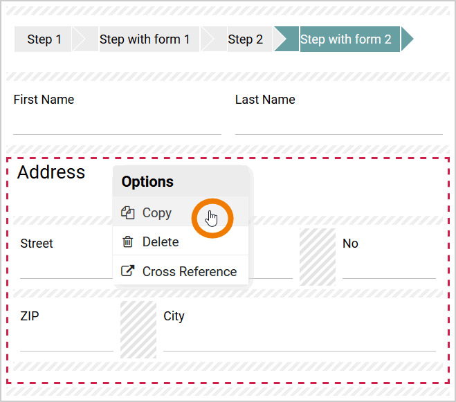 Now drag the responsive element to the new position within the form (in our example we drag the entire Address block):