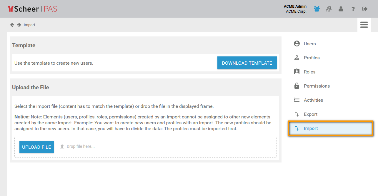Use menu Import to import data into your Scheer PAS Administration: