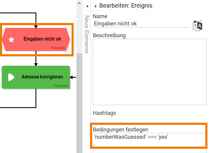 Die Bedingungsprüfung in den Ereignissen bezieht sich nun ausschließlich auf die Variable numberWasGuessed. Im Ereignis Eingaben nicht ok wird geprüft, ob Korrekturen vorgenommen wurden: