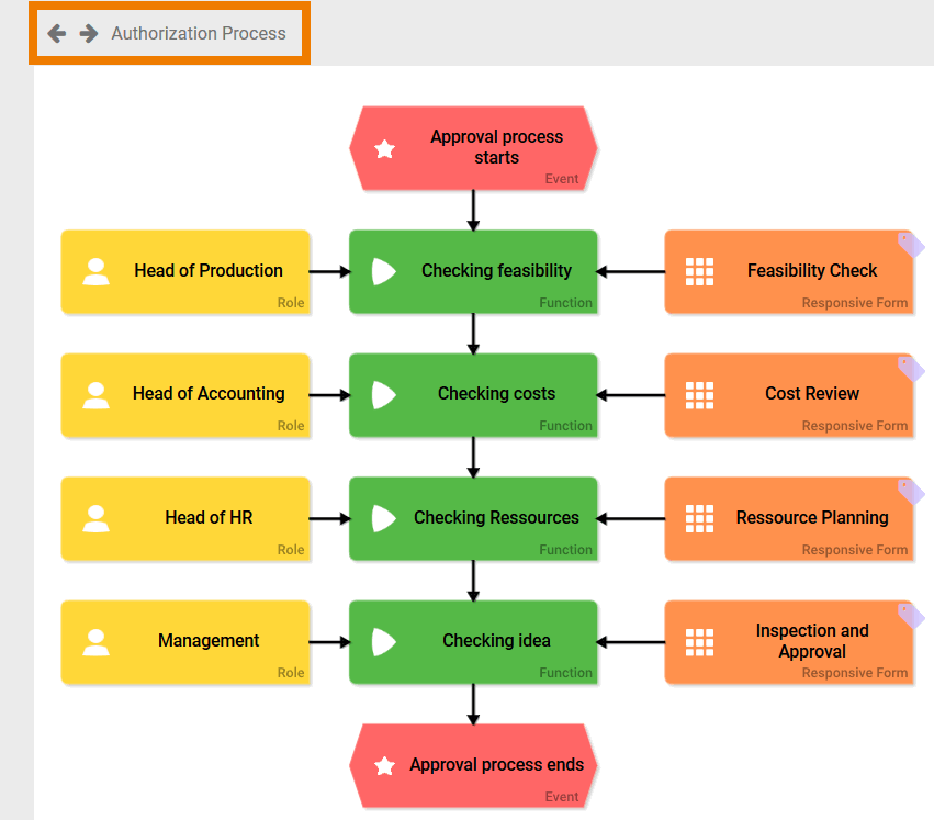 A new idea has to be reviewed by more than one approver. The form Authorization was therefore replaced by the EPC Model Authorization Process, in which the entire approval process is displayed: