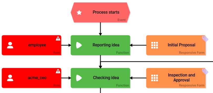 If you just use the export and import function in the BPaaS editor to transfer the model between different systems, the Role elements in the EPCs will be transferred - but in the new system, they will be displayed in red color: