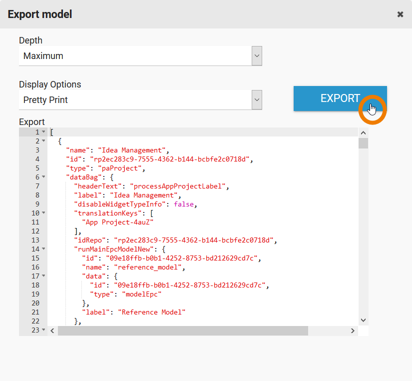 In BPaaS, you can export models, for example to transfer them to another profile - or another system: