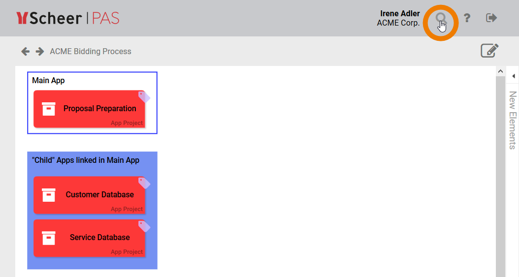 BPaaS contains a global search function. You can find the search in the editor's navigation bar: